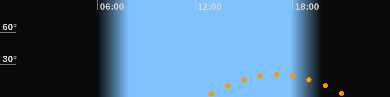 | Aufgang | 12:33 Uhr im Südosten (αAz = 118,8°) |