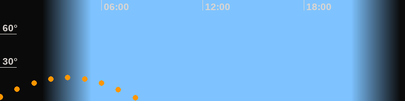 | Aufgang | 23:26 Uhr im Südosten (αAz = 118,8°) |