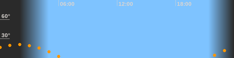 | Untergang | 06:23 Uhr im Südwesten (αAz = 241,2°) |