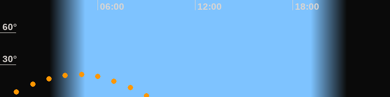 | Untergang | 09:14 Uhr im Südwesten (αAz = 241,2°) |
