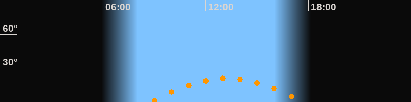 | Aufgang | 08:46 Uhr im Südosten (αAz = 118,8°) |