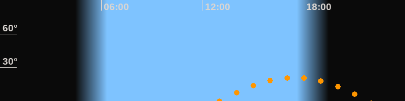 | Aufgang | 12:55 Uhr im Südosten (αAz = 118,8°) |