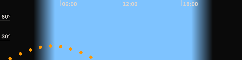 | Untergang | 09:37 Uhr im Südwesten (αAz = 241,2°) |