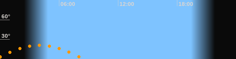 Aufgang23:29 Uhr im Südosten (αAz = 118,8°)