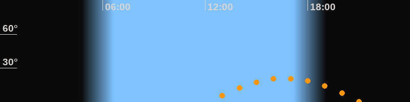 | Aufgang | 12:11 Uhr im Südosten (αAz = 118,8°) |