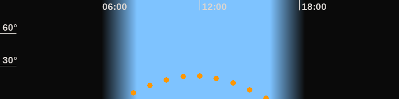 | Höchster Stand (Kulmination) | 11:41 Uhr (h = 21,1°) |