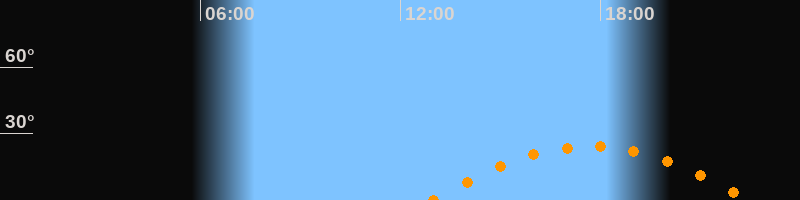 | Höchster Stand (Kulmination) | 17:43 Uhr (h = 24,3°) |