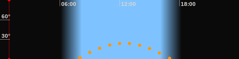 | Höchster Stand (Kulmination) | 12:27 Uhr (h = 24,3°) |