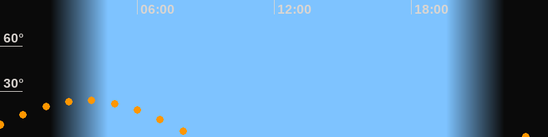 | Aufgang | 22:54 Uhr im Südosten (αAz = 113,4°) |