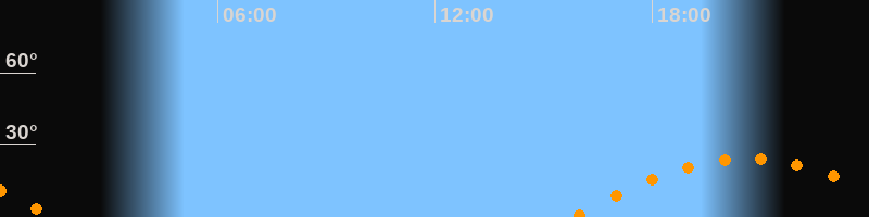 | Untergang | 01:27 Uhr im Südwesten (αAz = 246,6°) |