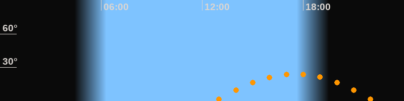 | Höchster Stand (Kulmination) | 17:30 Uhr (h = 24,3°) |