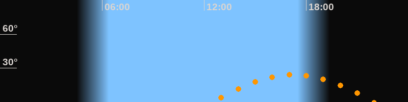 | Aufgang | 12:28 Uhr im Südosten (αAz = 113,4°) |