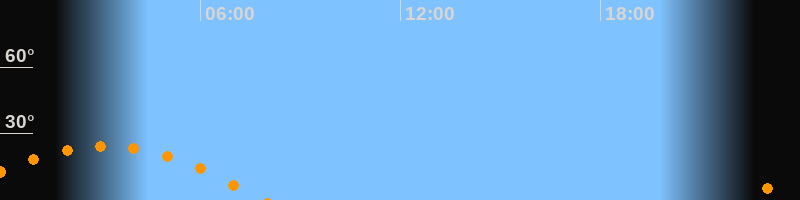| Aufgang | 22:16 Uhr im Südosten (αAz = 113,4°) |