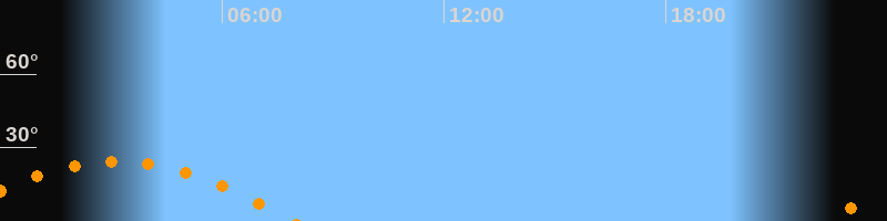 | Aufgang | 22:18 Uhr im Südosten (αAz = 113,4°) |