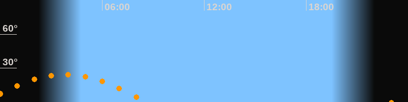 | Aufgang | 22:58 Uhr im Südosten (αAz = 113,4°) |
