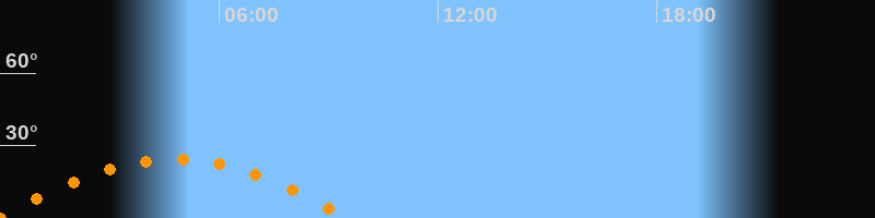 | Untergang | 09:32 Uhr im Südwesten (αAz = 246,6°) |