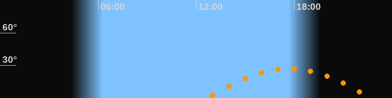 | Höchster Stand (Kulmination) | 17:40 Uhr (h = 27,3°) |