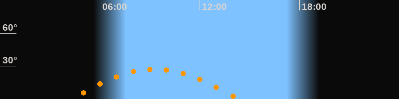| Höchster Stand (Kulmination) | 09:18 Uhr (h = 27,3°) |