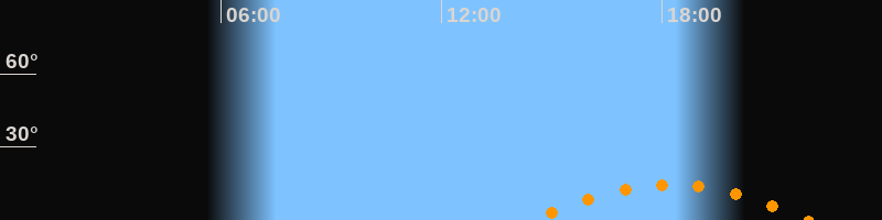 | Höchster Stand (Kulmination) | 18:14 Uhr (h = 14,4°) |