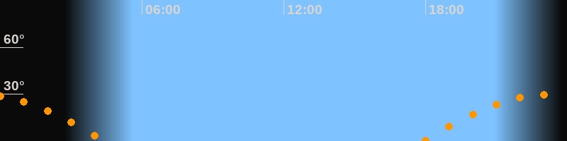| Aufgang | 17:52 Uhr im Osten (αAz = 104,6°) |