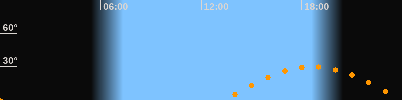 | Höchster Stand (Kulmination) | 18:39 Uhr (h = 29,7°) |