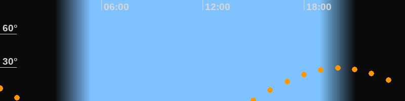 | Aufgang | 14:50 Uhr im Osten (αAz = 104,6°) |