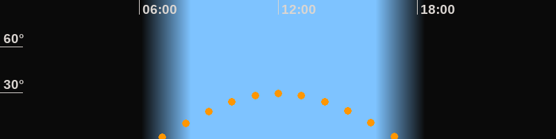 | Höchster Stand (Kulmination) | 12:01 Uhr (h = 29,7°) |