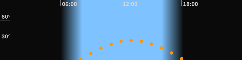 | Höchster Stand (Kulmination) | 13:02 Uhr (h = 29,7°) |