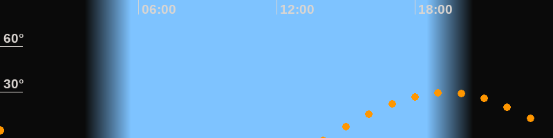 | Höchster Stand (Kulmination) | 19:20 Uhr (h = 29,7°) |