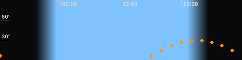 | Aufgang | 14:14 Uhr im Osten (αAz = 104,6°) |