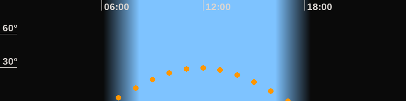 | Höchster Stand (Kulmination) | 11:49 Uhr (h = 29,7°) |