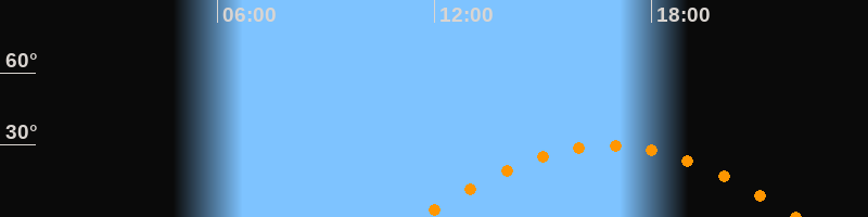 | Höchster Stand (Kulmination) | 16:49 Uhr (h = 29,7°) |
