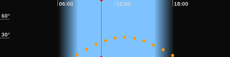 | Höchster Stand (Kulmination) | 12:57 Uhr (h = 31,5°) |