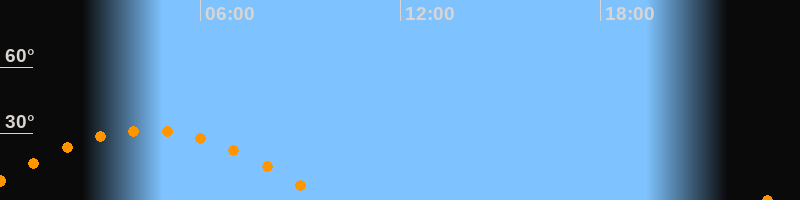 | Höchster Stand (Kulmination) | 04:23 Uhr (h = 31,5°) |