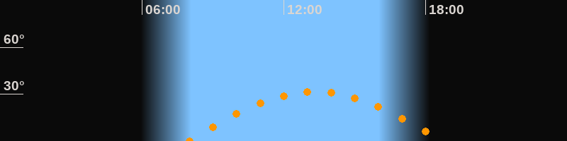 | Höchster Stand (Kulmination) | 13:19 Uhr (h = 31,5°) |