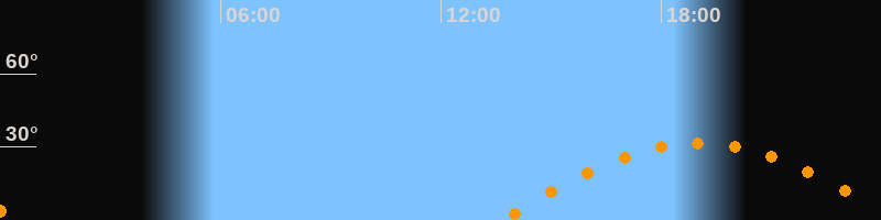 | Höchster Stand (Kulmination) | 19:02 Uhr (h = 31,5°) |
