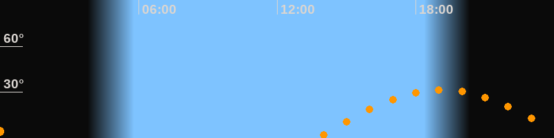 | Höchster Stand (Kulmination) | 19:07 Uhr (h = 31,5°) |