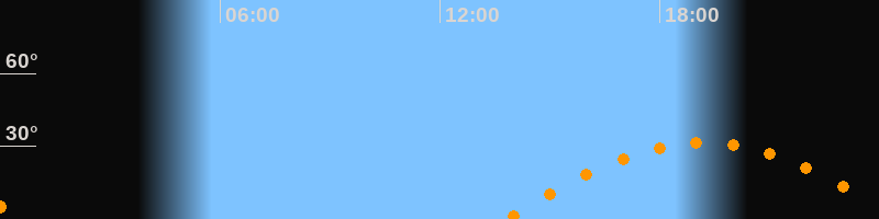 | Höchster Stand (Kulmination) | 19:12 Uhr (h = 31,5°) |