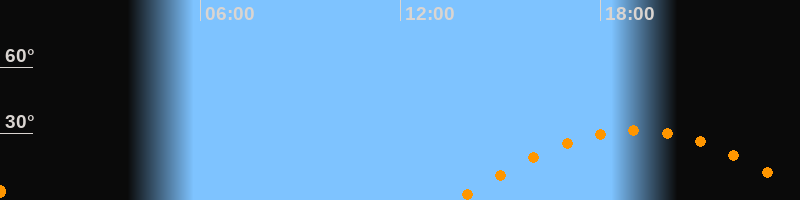 | Höchster Stand (Kulmination) | 19:04 Uhr (h = 31,5°) |