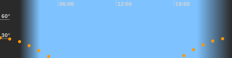 | Aufgang | 18:28 Uhr im Osten (αAz = 101,6°) |