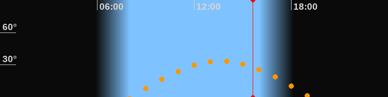 | Höchster Stand (Kulmination) | 13:38 Uhr (h = 33,5°) |