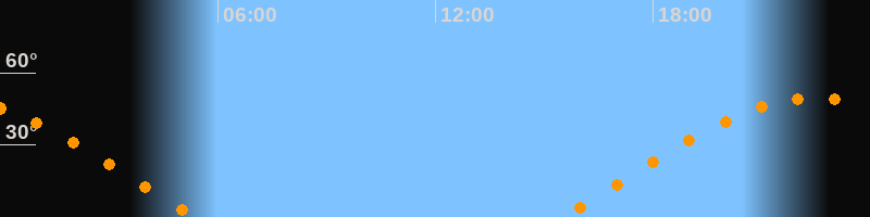 | Aufgang | 15:30 Uhr im Osten (αAz = 72,8°) |