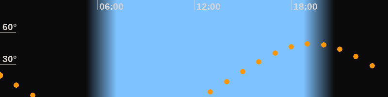 | Aufgang | 12:23 Uhr im Osten (αAz = 72,8°) |