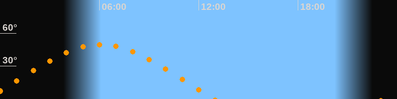 | Höchster Stand (Kulmination) | 06:03 Uhr (h = 49,6°) |