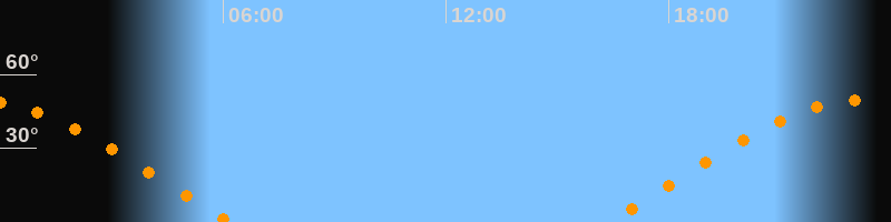 | Aufgang | 16:21 Uhr im Osten (αAz = 72,8°) |