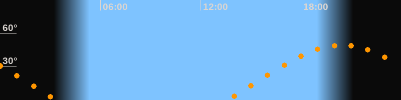 | Aufgang | 13:32 Uhr im Osten (αAz = 72,8°) |