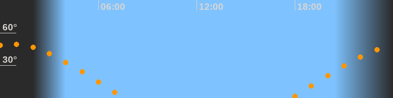 | Aufgang | 17:45 Uhr im Osten (αAz = 72,8°) |