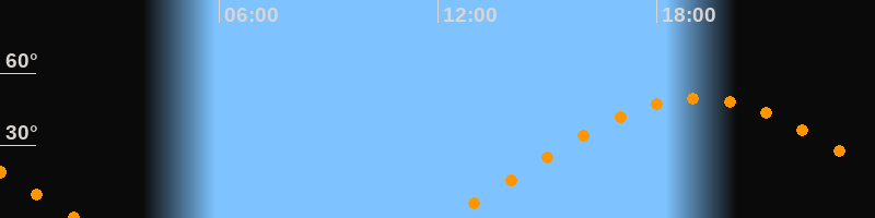 | Aufgang | 12:15 Uhr im Osten (αAz = 72,8°) |