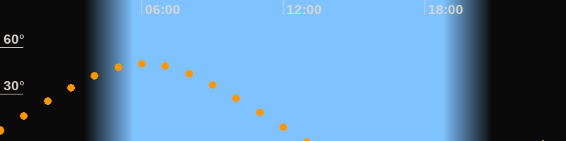 | Höchster Stand (Kulmination) | 06:06 Uhr (h = 49,6°) |
