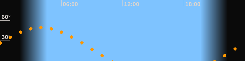 | Untergang | 10:54 Uhr im Westen (αAz = 287,2°) |